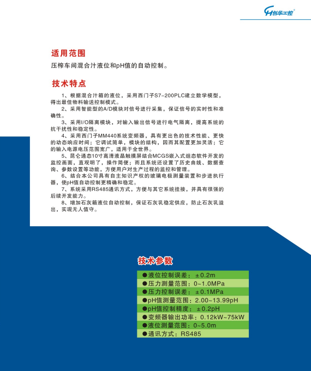 壓榨車間混合汁液位和pH值自控系統(tǒng)